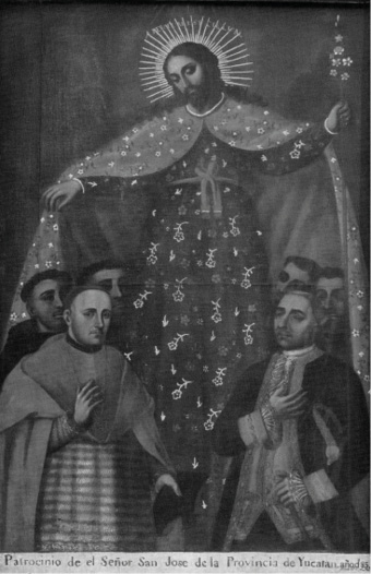 San José ha sido, desde tiempos antiguos, un icono especial en el panteón cristiano. Desde 1555, durante el Primer Concilio Mexicano, las autoridades eclesiásticas novohispanas lo proclamaron como Patrono general de la Iglesia que se instauraba (Montes, 2014: 255), sobre todo por la influencia de los franciscanos que veían en el padre putativo de Jesús a un gran protector del proyecto evangelizador. No hubo catedral o iglesia importante que no tuviera entre sus devociones al esposo terrenal de María, mientras que las capillas dedicadas a este santo fueron muchísimas; la catedral de Mérida (Yucatán) no fue la excepción, pues en el siglo xvii se construyó una capilla en donde se le veneró, llegando a ser muy prestigiosa, sobre todo como lugar de entierro de las élites42 (Bretos, 2013: 171).