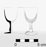 Además, se recuperó el fragmento de una pequeña copa de base circular de 2 cm de grosor con un diámetro de 3.8 cm y una altura de 6.6 cm. El color del vidrio es blanco translúcido y no presenta marcas realzadas. Probablemente en este contenedor se servía algún tipo de licor digestivo y/o coñac (Figura 13).