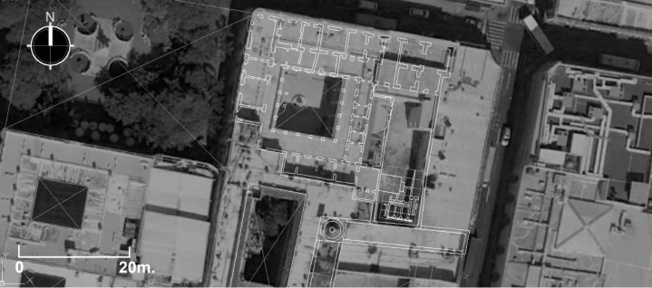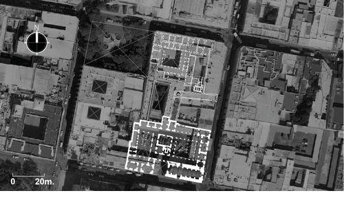 *NOTA: Las enfermerías en escuadra que aparentemente interrumpen el flujo datan de la segunda mitad del siglo XVIII, por lo que la sección explorada ya no formaba parte del predio del hospital.