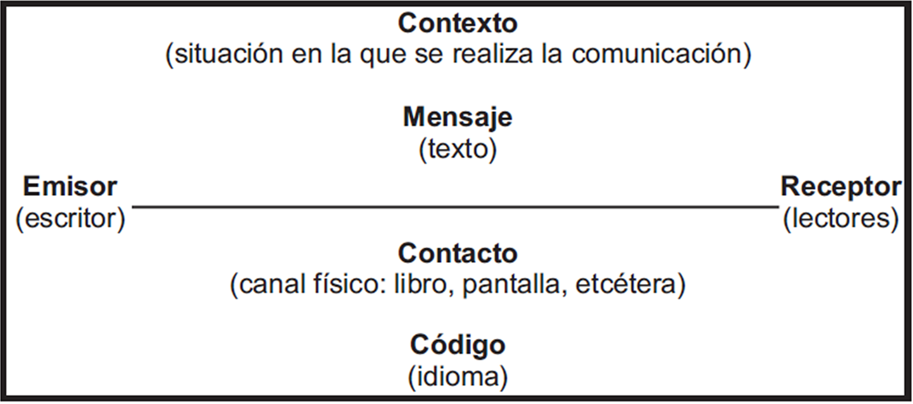 Jakobson afirma que en toda comunicación humana se encuentran estos seis elementos, y por eso es importante identificarlos todos. Sin embargo reconoce que es necesario advertir que estas funciones tienen un orden jerárquico diferente al momento de estudiarlos, y éste se da según el tipo de estructura verbal que se interprete. Las necesidades de esta investigación han modificado la jerarquía de las funciones. Por ese motivo, para analizar las obras literarias, se reorganizará el esquema de la comunicación de la siguiente manera: el emisor se constituye por el escritor, el mensaje es el texto, y el receptor son los lectores de dichas obras literarias (ver ilustración 1).3