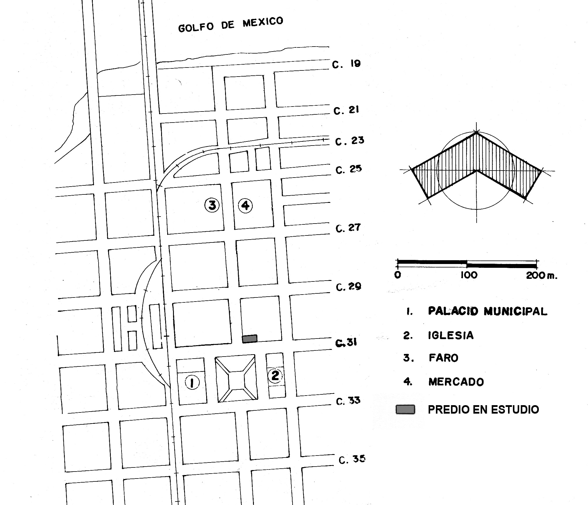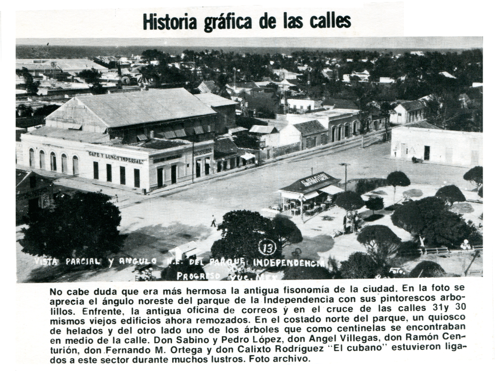 Uno de los puntos de referencia con mayor importancia en el puerto de Progreso, desde finales del siglo xix y principios del xx fue, sin duda, el antiguo predio número 29 en el cruce de las calles anteriormente denominadas la “Central” y la “Igualdad”; actualmente, número 150 de la calle 30 con 31 frente al parque “Independencia”, originalmente denominado “Zaragoza”, y cuyos linderos fueron en 1909: “[…] al norte solar con casa de Nicolás Martínez; al oriente casa de madera y teja de Antonio Acevedo Espejo; al sur calle y parque Zaragoza; y al poniente calle y casa de Arturo Echánove […]”.[1](figura 1).