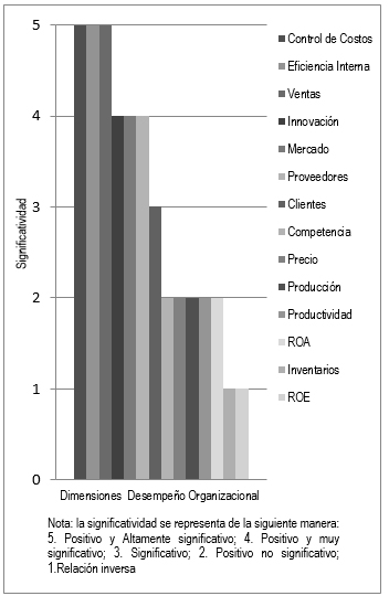 En base a lo analizado en el presente estudio, la medición del desempeño organizacional ha probado ser un constructo problemático en la investigación de negocios y de sistemas, dado que no existe una medida universal reconocida para este concepto, puede ser evaluado con datos objetivos (financieros) o subjetivos (percepción del encuestado), así como, desde diferentes perspectivas económicas, culturales y de gestión. En este sentido, la literatura consultada coincide en que los factores de rendimiento económico evaluados de manera objetiva, en el contexto latinoamericano son un tema difícil y complejo de investigar, esto debido a la carencia y disponibilidad, pero principalmente al acceso restringido que se tiene a este tipo de información en las organizaciones.