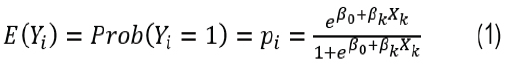 Through linearization of the model and based on the general equation of Logit Model, yi is defined as the probability of state or alternative 1: