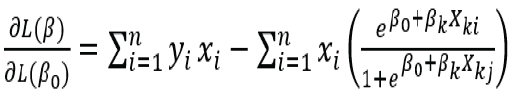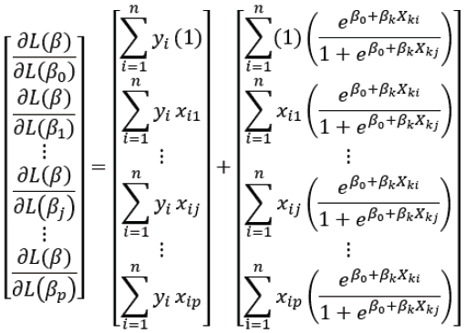 (1)For obtaining the maximum likelihood of β estimators, it is derived L(β) for each βj parameters with j= 1, 2, ..., p and equate to zero. In terms of matrix