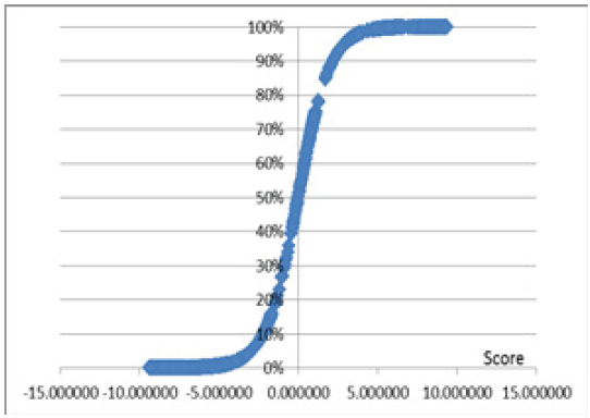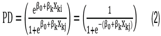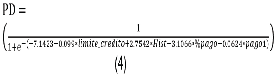 While the score obtained, with the proposed variables, the logit transformation of Equation 16 is applied to obtain the probability of default calculated (PDC).