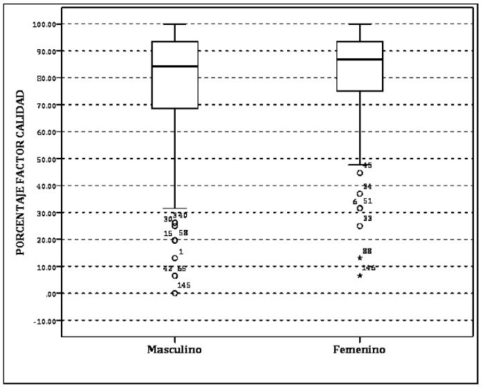 H1a2: Existe una relación entre el género y el factor de la calidad.