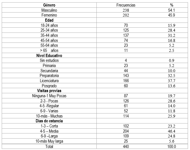 Se realizó un análisis descriptivo que incluye dos apartados: el perfil de los turistas nacionales que visitan Acapulco como destino de sol y playa, y los elementos inherentes a la variable valor percibido, en donde se analizan los valores medios de los ítems considerados en el estudio.