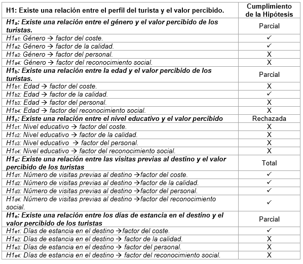 H1: Existe una relación entre el perfil del turista y el valor percibido.