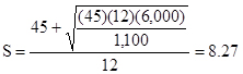 Si se aplica la ecuación (11) con tanteos, se llega a un valor S de 14.75 para obtener el costo mínimo, con el cual se da la siguiente igualdad: