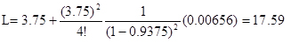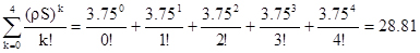 Para obtener el valor de L, hay que ir por pasos, calculando primero el término de la sumatoria que aparece en la ecuación (9) para un número de servidores de 4 y un valor constante ρS de 3.75: