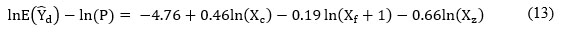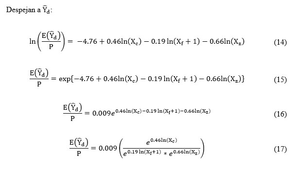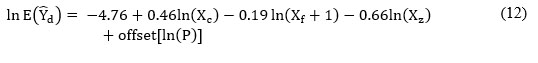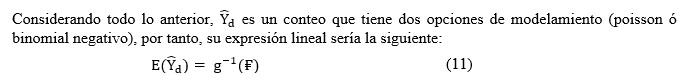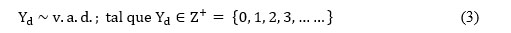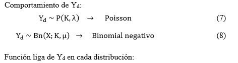 Los GLM tienen tres componentes: el primero, la distribución de Y; el segundo, la función liga; y el tercero, la función offset (Müller, 2004). Partiendo de estos tres componentes, Yd se comportaría y se modelaría de la siguiente forma: