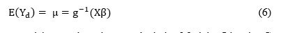 (5)Al ser una función de distribución de la familia exponencial, la media de la distribución depende de las variables independientes X, a través de la siguiente expresión (Mc Cullagh & Nelder, 1983).