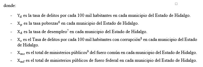 Con el desarrollo del presente modelo (regresión binomial negativo) se pudo evaluar tres aspectos importantes sobre el fenómeno de la delincuencia en el Estado de Hidalgo: