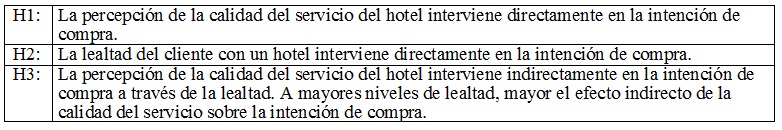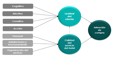 En la literatura se reportan diversos estudios que relacionan las variables delimitadas dentro de este análisis de diferentes formas. Sin embargo, destaca la interesante relación dual que existe entre la calidad del servicio percibido y la intención de compra, la cual se reporta como directa y a la vez indirecta a través de la mediación de la satisfacción del cliente –también identificada y relacionada en la literatura como dimensión de la lealtad- y la misma lealtad (Maroco y Maroco, 2013; Mosahab, Mahamad y Ramayah, 2010; Alén, Rodríguez y Fraiz, 2007). Más recientemente, se hace incluso la propuesta de un modelo integrador que incluye los constructos de calidad en el servicio hotelero de cuatro y tres estrellas en la localidad de Kaunas en Lituania y la lealtad de los clientes, ambos como factores predictores de la intención de compra como una actitud, la dinámica de compra repetida y la recomendación. Este modelo se denomina SERVQUALOYL y los resultados indican una alta relación entre la expectativa de calidad y la experiencia con la lealtad del cliente, y esto a su vez se traduce en cambios en la recompra y recomendación (Jasinskas, Streimikiene, Svagzdiene y Simanavicius, 2016). Sin embargo, se aprecia una brecha de información sobre este modelo no solamente en la documentación en español sino también en inglés, es por ello que se considera importante la aportación teórica resultante de este análisis en el contexto hispanoparlante.
