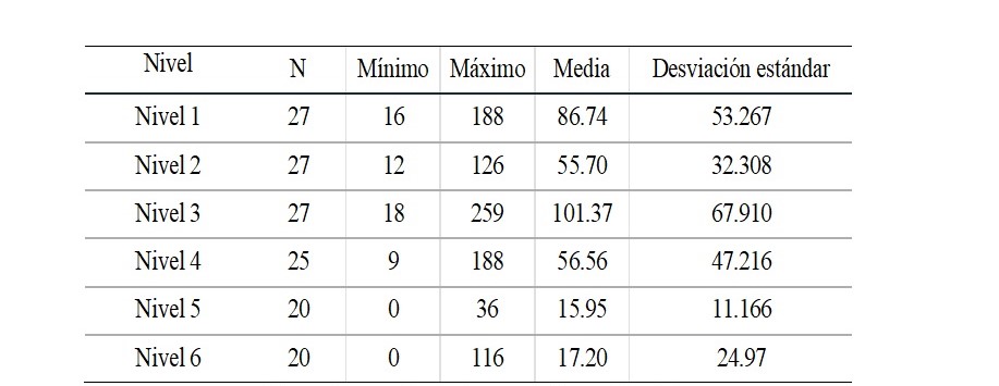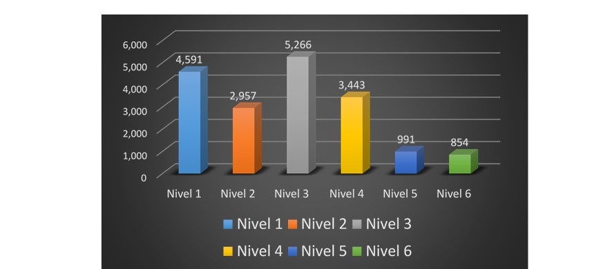a) Falta de univocidad. El número de respuestas es mayor al número de empresas, esta anomalía es debido al formato ofrecido y a la ambigüedad de las actividades en las preguntas, donde las empresas tienen la opción de responder en varios niveles de la escala, cuando en principio en una escala progresiva gradual, debió ser sólo uno unívoco determinado por el nivel máximo seleccionado por las actividades que se realizan. Este principio de asignar sólo un nivel a una tecnología, está presente en la escala de madurez tecnológica más reconocida internacionalmente que es la denominada TRL diseñada por la NASA (Mihaly, 2017), de igual forma en el modelo desarrollado por el centro de investigación canadiense INO (2012).