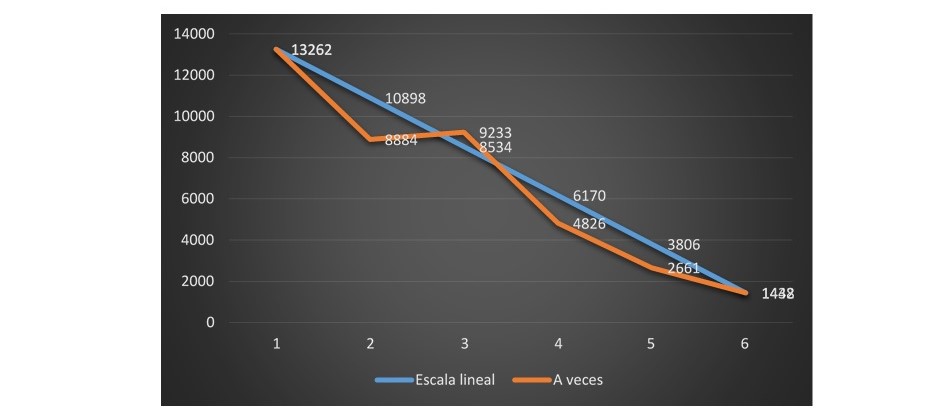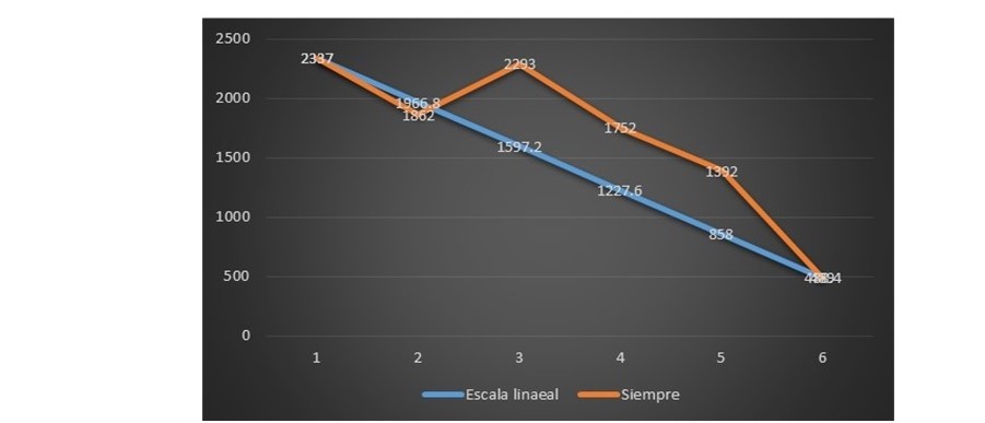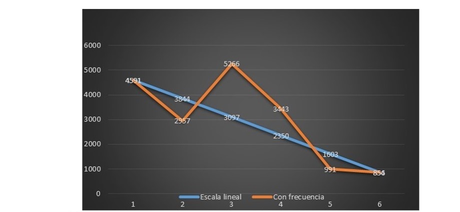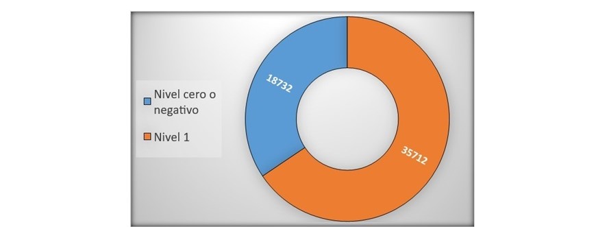 c) Falta de universalidad. Igualmente, asumiendo que la escala es progresiva, en la frecuencia “nunca”, el número de empresas en el nivel 1 que son 35 712, es menor que las empresas de la muestra, que son 54 444, en 18 732 empresas, lo cual representa un 34.4% de empresas excluidas que no alcanzan el nivel 1, por lo que tendrían que ser de un nivel cero o negativo, lo cual hace que pierda su característica de generalización y aplicabilidad al conjunto de empresas.