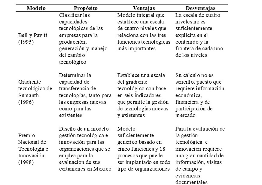 A continuación, se muestra en la Tabla 2 tres de los principales modelos para evaluar el estado tecnológico de una organización, sea empresa o institución.