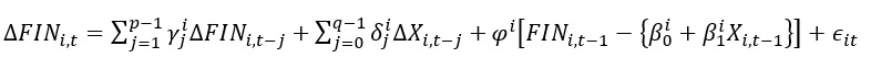 Following Loayza and Ranciere (2006) and Pesaran et al. (1999), we propose model of a dynamic heterogeneous panel and error correction based on the autoregressive distributed lag technique
