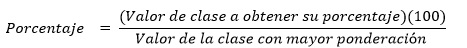 Cada indicador publicado estaba expresado en unidades diferentes, por lo que fue necesario homogenizarlos, para lograrlo, se necesitó obtener los porcentajes de cada variable de forma individual (Cornejo, 2018; Black, 2019), para esto se utilizó la siguiente expresión: