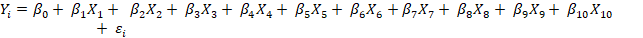 Β10 es el coeficiente que determina la relación entre la variable de control X10, que es el tipo de industria y la variable dependiente Yi de emisiones de carbono, y