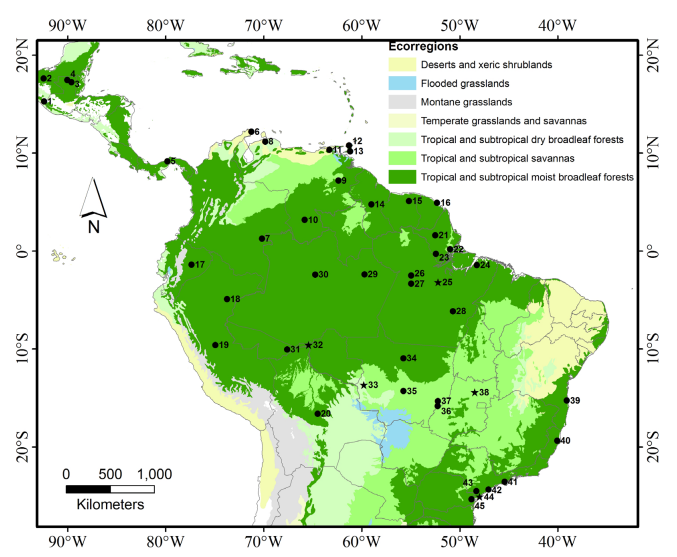 Keywords:AmazonAmazon,Atlantic ForestAtlantic Forest,CerradoCerrado,ChiropteraChiroptera,DistributionDistribution,Orange-throated batOrange-throated bat.