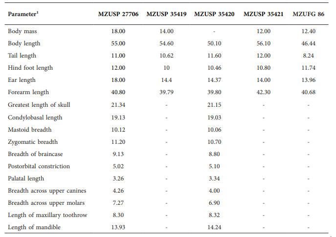 We recorded five specimens of L. brachyotis (Fig. 1; Table 1), two from the Cerrado, two from the Amazon, and one from the Atlantic Forest (detailed information in Table 2). All individuals were netted at ground level and handled in accordance with Sikes et al. (2011), fixed in 10% formaldehyde and preserved in 70% ethanol, and the skulls were removed and cleaned (Fig. 2). External and cranial measurements are in Table 3. The specimens are housed at the zoological collections of the Museu de Zoologia da Universidade de São Paulo (MZUSP) and of the Universidade Federal de Goiás (MZUFG).