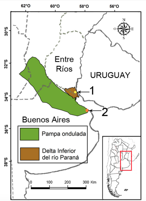 En Argentina, la información existente sobre los murciélagos es asimétrica, dado que se conocen relativamente bien los ensambles del noroeste del país, pero es incompleto el conocimiento que se tiene sobre estos mamíferos en otras áreas (Barquez et al., 1999; Barquez y Díaz, 2009). Entre estas últimas se encuentra el área que abarca la Pampa Ondulada y el Bajo Delta del Paraná, que incluye el límite ecotonal subtropical pampásico, lo que le otorga importancia biogeográfica y ecológica, y que además está sujeta a una fuerte alteración antrópica (Ringuelet, 1978; Bó, 2006; Viglizzo et al., 2006).