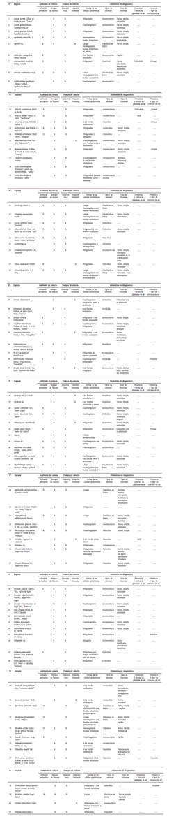 Abstract: In the Northwest of Córdoba (Argentina) lives a small population of guanaco (Lama guanicoe Müller, 1776), of which only occasional records are available in the natural region of the Western Chaco District. We analyzed the diet composition of guanacos in the dry and wet seasons in the center of Arid Chaco Biogeographical Corridor of Córdoba, taking into account two natural environments of the region: Open Forest Plain and Perisaline Shrub. During the years 2009 and 2010, plant samples were taken in the town of Piedrita Blanca and surrounding areas, vegetation reference patterns were recorded and epidermal cells, presence and characteristics of stomata, hairs and salt glands of each species were described. Feces were collected from active dung piles and relative frequencies of plant species were determined by fecal micro-histological analysis. The diet diversity was analyzed from the graph of diversity and relative abundance, complemented by Simpson’s inverse index (Cinv). In the analyzed feces, 57 native plant species (that belong to 35 genera and 19 families) were observed. The diet diversity did not differ significantly between seasons or between environments. The main species consumed were grasses, followed by Geoffroea decorticans (Gillies ex Hook. & Arn.) Burkart, Atriplex cordobensis Gand. & Stuck., and several species of the genus Prosopis. Woody plants, grasses and halophytes were the most abundant, in descending order. In both environments, herbaceous plants other than grasses were more consumed in wet season and cacti in the dry season.