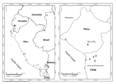 The previous southernmost record of P. davisoni (Flores et al. 2015) from Pampa Alta, Tacna is 125 km south from the earlier record, in Arequipa. As in southern Peru, in Northern Chile the valleys are separated by wide extensions of desert (Morrone 2006). It seems that P. davisoni is capable of crossing these barriers when the distance is smaller than 50-100 km. As such the species could be found as south as the Tana Valley, Tarapacá Region, Chile (19.5° S); surveys at that and intermediate valleys are needed to test this possibility.