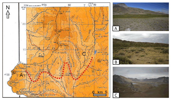 Bridges botanical collections have received attention due not only to their number and variety but also to the associated geographic uncertainties. Thanks to the detailed research by Johnston (1928) based largely on Bridges’ notes and letters, we were able to extract crucial information regarding his activities. He was born in 1807 and began working as collector in Chile in 1828. Settled in Valparaíso, he spent his first years near this city with only a single excursion to Argentina that followed the route of Aconcagua (in 1830), well north of Peteroa. By the end of 1832 and during 1833, Bridges worked around Valdivia, reaching Chiloé Island. He spent the following several years pursuing other activities near Curicó but returned to botanical collecting in 1841. In a letter dated 1 June 1841, he indicated that during this year he “. . . made an excursion over the Andes by Pass of Planchon, lat. 34-35°, to the elevated valley on the eastern slope;” accordingly, “to reach Paso El Planchon, lat. 35°12’S., Bridges had to ascend the cordillera entirely within Curico” (Johnston 1928:102). The association between this excursion and the collection of A. fuscus is largely without doubt, since this animal was presented by G. Waterhouse on November 9, 1841, right after Bridges’ excursion. Based on these data, we can assert the following two pieces of information: (1) Bridges crossed the Andes from Chile to Argentina using the Paso (= Pass) del Planchón and (2) he collected the original specimen of A. fuscus during the southern summer (January to March) of 1841. Paso del Planchón is located about 5 km north of Volcán Peteroa (summit point at 4 135 m). On the Argentine side, this route leads to a nearby series of small valleys and, after approximately 30 km, to a large valley containing the río Tordillo that is known as Valle Hermoso (Carta Topográfica del Instituto Geográfico Militar “Malargüe”, Hojas 3572-IV and 3569-III, 1971, scale 1:250 000; Fig. 1). To access the next valley to the east (Valle de las Leñas), it is necessary to cross about 10 km of mountains (Fig. 1), indicating that there is no other nearby valley that matches Bridges description of the location at which he captured A. fuscus. To suggest that Valle Hermoso is the Bridges’ “Valle de las Cuevas” is the most parsimonious hypothesis according to the evidence at hand.