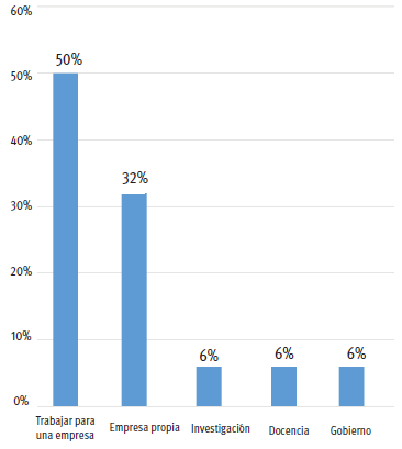 A esta cuestión, 50% expresó como su deseo trabajar en una empresa; 32% manifestó tener su propia empresa; 6% expresó su interés por desarrollarse en la investigación, lo que implicaría continuar estudiando en programas de posgrado; sólo 6% demostró un interés por la docencia y otro 6% por trabajar como empleado de alguna instancia gubernamental. Esto refleja, otra vez un cambio en la percepción del rol de la mujer, ya que únicamente 12% mostró interés por un trabajo considerado como “más tradicional” para las mujeres, como docente o funcionario público. De acuerdo con Cólas y Jiménez (2006), se debe crear espacios en los que se trasformen las prácticas sociales entre géneros para evitar la discriminación en el ámbito laboral.