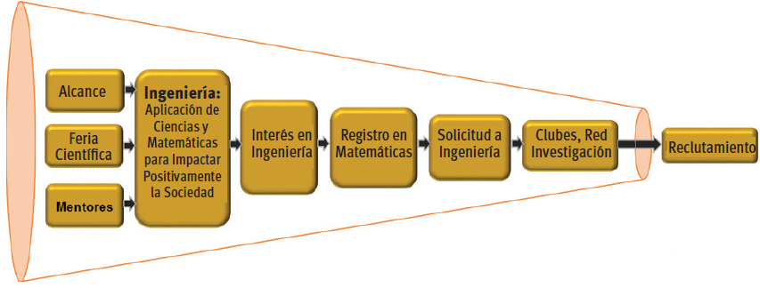 Con el objetivo de impulsar la inserción de las mujeres en el sector productivo, a su vez como elemento fundamental para el desarrollo económico, la ocde establece políticas educativas para América Latina basada en el modelo stem: dicho modelo combina un número de diferentes tipos de contenido que acentúan las estrategias educativas con el fin de motivar y evitar la deserción de las mujeres en la ingeniería, v. gr.: estancias en las empresas para la aplicación práctica de los conocimientos adquiridos en la universidad, implementación de talleres vivenciales, lectura crítica, debates, mesas de discusión, pensamiento crítico, ferias y concursos de ciencias, clubes y redes de investigación, así como también talleres y platicas de mentores exitosos en las áreas stem(figura 3).