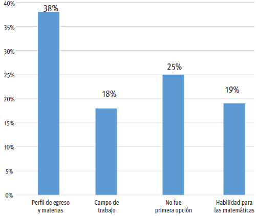 De las estudiantes, 38% declararon que su elección por la ingeniería fue informada, pues investigaron acerca de las materias a cursar y el perfil de egreso. Además, 18% eligió su carrera con base en las oportunidades y actividades a realizar en el campo de trabajo. Sorprende encontrar que para 25% de ellas, la ingeniería no fue su primera opción, pero inician una carrera en ingeniería convencidas de las oportunidades que les otorga. Sólo 19% expresó que su inclinación por ingeniería se debe a su gusto y dominio por las matemáticas. Saberse hábil en las matemáticas siempre fue un incentivo mayor para estudiar ingeniería: actualmente stem representa un plataforma que engloba la ciencia y la tecnología con el estudio de las matemáticas.