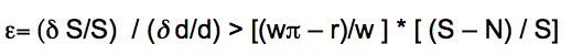 Donde e es la elasticidad ingreso de la emigración; S, la pea en México y N su ocupación, [(S – N)/ S], la tasa de desocupación; w, el salario estadunidense; wp, el salario esperado con p probabilidad de hallar ocupación, de 0.5 para tener máxima varianza; r, el salario mexicano, luego d=(wp–r)/w corresponde a la brecha salarial; la elasticidad se comporta como se muestra en el gráfico 8, construido principalmente con datos trimestrales de la enoe.