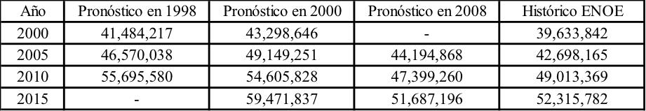 Del cuadro 4 se infiere que: i) los pronósticos de 1998 y 2000 superan a los registros históricos respectivos; ii) los pronósticos se reducen de 1998 a 2008, iii) los de 2008 son menores a los datos históricos, excepto en 2005, esto es raro porque ya existía un dato histórico; y iv) los excesos de los pronósticos de 1998 y 2000 sobre el respectivo dato de 2010, son 6.7 y 5.6 millones, el de 2000 sobre 2015, 7.2 millones; cifras cercanas al flujo estimado en ee.uu. entre 1990 y 2012.