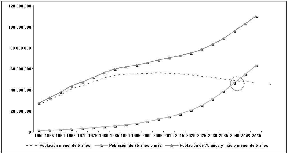 En ese sentido, un Gobierno no pude omitir sus obligaciones de velar por el cuidado (en términos de salud, bienestar económico y ambientes naturales propicios) de sus gobernados. Las proyecciones demuestran que la dependencia10 de niños menores de 5 años y personas de 75 años y más, estarán constituyendo los grandes bloques de sujetos que requerirán de cuidados (ya sea temporales o prolongados) y que las políticas sociales irremediablemente tendrán que enfrentarse a ese fenómeno ascendente.