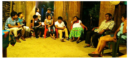 Por último, las y los estudiantes participaron en una reunión en la casa del campesino, en donde les explicaron cómo está organizado el ejido, qué actividades se desarrollan y por qué la mujer no participa en las reuniones. Dicha reunión comenzó a las 7:30 pm., situación que causo extrañeza en algunos jóvenes, ya que se pensó que las visitas a las organizaciones se realizarían en horario de clase y no por la noche.
