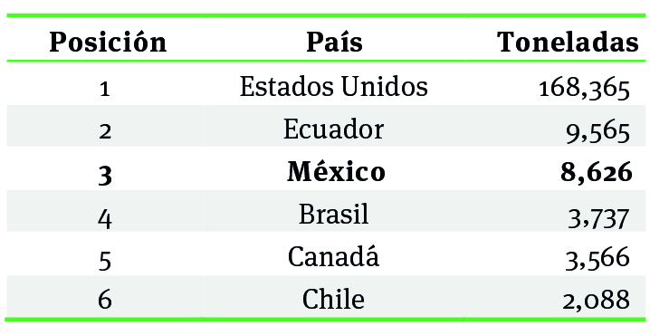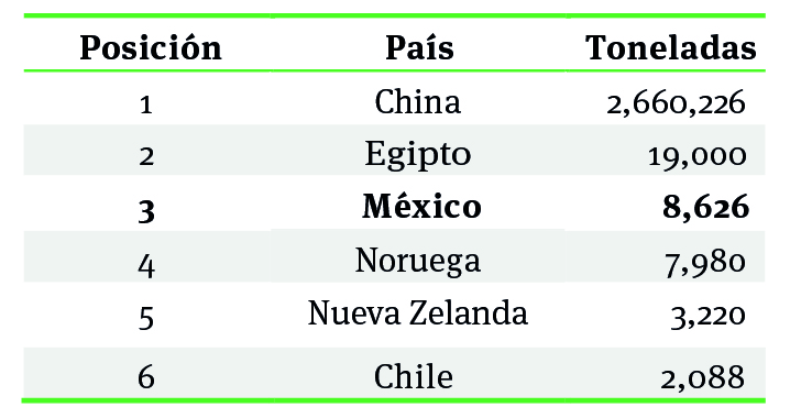 En 2010, y de acuerdo con el reporte de fao emitido en 2012, la producción acuícola mundial, tuvo el liderazgo de Egipto, Chile, China, Noruega y Nueva Zelanda. Por su parte en el 2010, México ocupó la posición 20 a nivel internacional (Conapesca, 2012) y la 6ta dentro del continente americano (fao, 2012). Sin embargo, su actual posicionamiento con respecto a décadas anteriores representa un retroceso y es que al comparar a los principales países de producción acuícola en el mundo, se observa que en 1980 México se ubicaba en la tercera posición, por encima de Noruega, Nueva Zelanda y Chile y solo debajo de Egipto y China, como se muestra en la tabla 1. Actualmente, estos países se ubican entre los primeros cinco mientras que México ya no aparece ni siquiera en los primeros diez. Lo mismo sucede si se hace una comparación entre los productores del continente americano. La tabla 2, muestra que en 1980 México, logró colocarse por encima de Brasil, Canadá y Chile, y solo detrás de Estados Unidos y Ecuador.