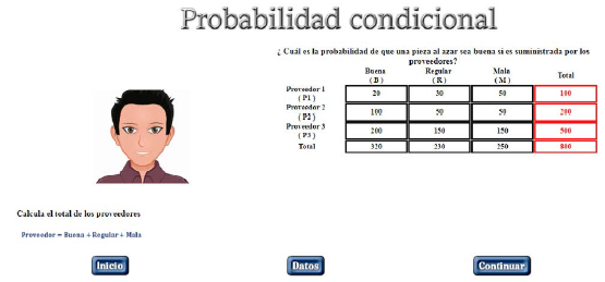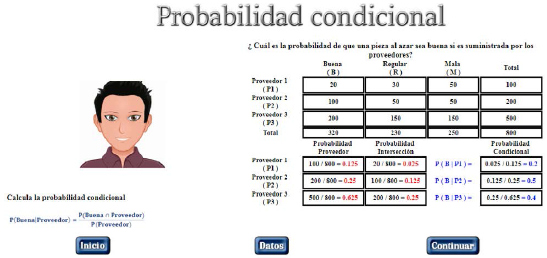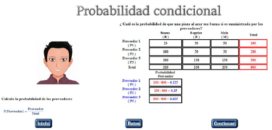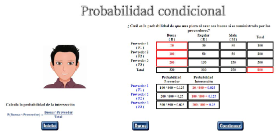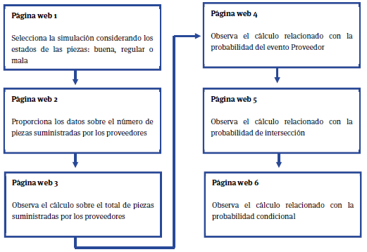 Limitations - these include that the awspc application presents the simulation of the conditional and intersection probability on the parts supply; the contents of this technological tool are in Spanish. Therefore, future research can design and build educational web systems that present the contents in several languages and use different exercises during the simulations. For example, the use of artificial intelligence in the educational context would allow the personalization of the themes
