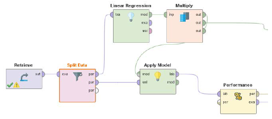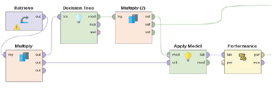 La figura 5 muestra los elementos empleados durante la construcción de los modelos predictivos por medio de la herramienta RapidMiner.