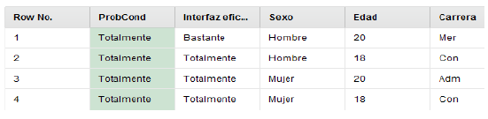 La tabla 8 muestra las condiciones en donde la aplicación awspc (interfaz intuitiva) facilita totalmente el proceso educativo sobre la probabilidad condicional.