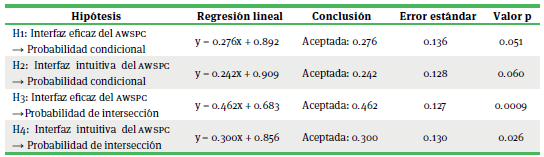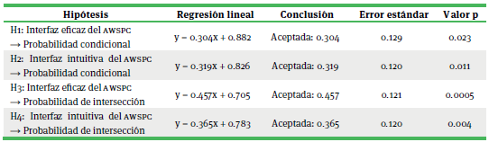 H3: La interfaz eficaz de la aplicación awspc influye positivamente en el proceso educativo sobre la probabilidad de intersección