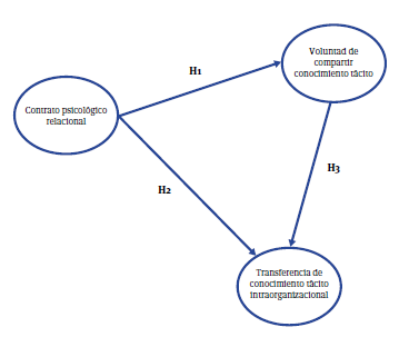 H1. El contrato psicológico relacional está positivamente relacionado con la voluntad de compartir conocimiento tácito.