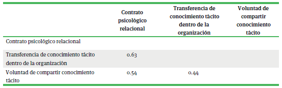 Relación del contrato psicológico con la intención de compartir conocimiento tácito y transferencia intraorganizacional