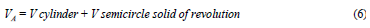 Equation (7) could easily be rearranged to become equation (1). Equations (2) and (3) could be developed following a similar strategy, i.e., using a straight circular cylinder combined with a solid of revolution. There is only one difference to be considered in the case of section B of the weight: the volume of the solid of revolution, if generated with a semicircle, must be subtracted from the base cylinder volume instead of added to it.