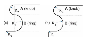 Is easy to see that if = b = R2, that is when the knob section of figure 4 becomes a semicircle, equation (12) reduces to equation (7), and from it to equation (1).