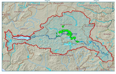 La cuenca Lerma-Chapala tiene un área de 48 215 km2, que representa menos del 3% de la extensión total del territorio nacional, sin considerar las cuencas cerradas de Pátzcuaro y Cuitzeo, Michoacán y Sayula, Jalisco. En esta cuenca habita el 11% de la población mexicana, y comprende porciones de cinco estados: Guanajuato, Michoacán, Jalisco, Estado de México y Querétaro; cada uno de ellos ocupa respectivamente el 49; 20; 15; 11 y 5% del área con respecto al total de la superficie de la cuenca (Mestre, 1993).