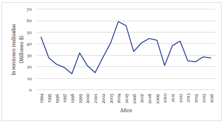 Por otra parte, en la gráfica 3, puede observarse la inversión total necesaria para los trabajos de conservación en ambos módulos, durante los años posteriores a la transferencia de la infraestructura. En apariencia, se trata de una serie estacionaria sin tendencia creciente, desafortunadamente no hay información disponible suficiente para comprobarlo estadísticamente.