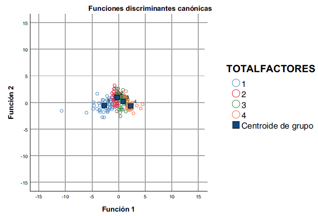 Análisis discriminante con el objetivo de determinar las capacidades discriminantes de los factores resultantes del análisis factorial exploratorio, empleando la prueba M de Box para comprobar la igualdad de las matrices de covarianza y Lambda de Wilks para evaluar la significación entre las medias de las variables independientes (Hair, et al., 1999).