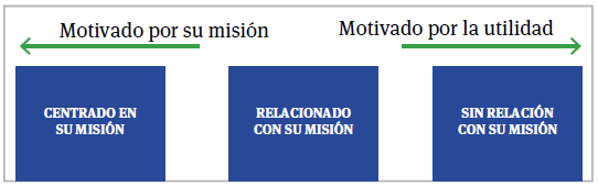Si la organización se centra en su misión indica que su motivación se encuentra en resolver una problemática o atender una necesidad social y pone toda su estructura y procesos para el cumplimiento de la misma, mientras más crece su negocio más personas puede beneficiar, si está centrada en las utilidades indica claramente el estilo de maximización de utilidades; Grassl denomina a este último como sin relación con su misión y lo descarta como parte de los modelos de negocio de los emprendimientos sociales (2012).